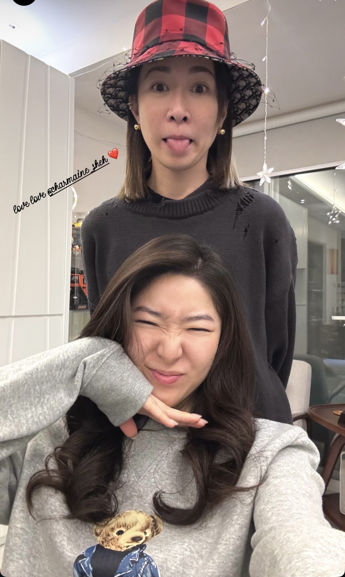 佘诗曼也扮鬼脸,看着非常有气氛,这样的佘诗曼,跟送许绍雄上山那个,仿佛是两幅面孔!