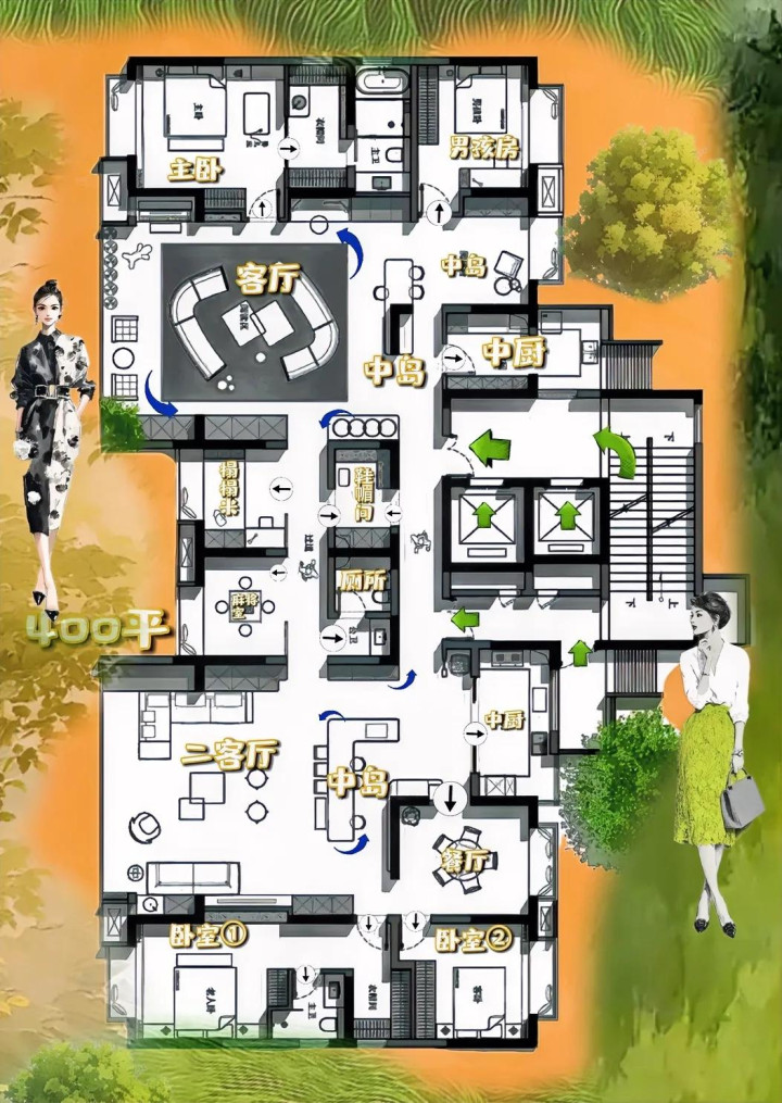 398㎡的通行证,格局明了,动线自由!